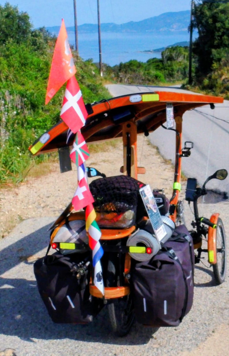 Equipé d'une assistance électrique solaire, je parcours aujourd'hui en compléte autonomie les routes de France et d'Europe pour découvrir les régions et rencontrer leurs habitants.
